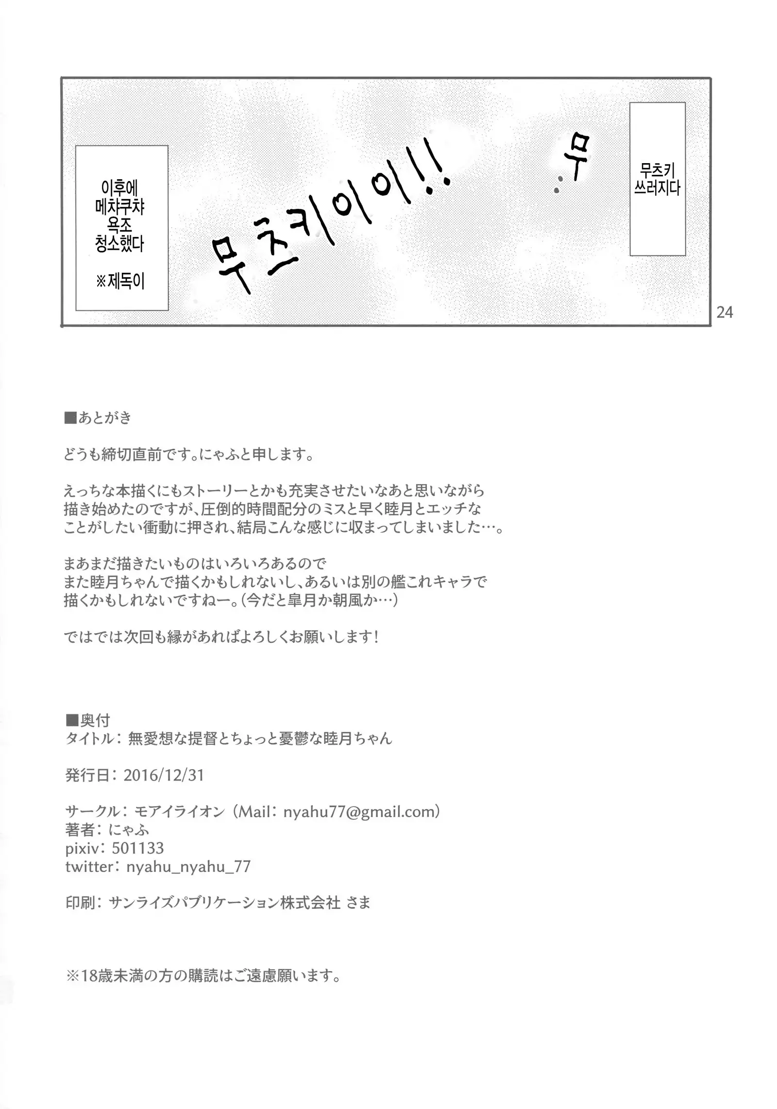 (C91) [Moai Lion (Nyahu)] Buaisou na Teitoku to Chotto Yuuutsu na Mutsuki-chan (Kantai Collection -KanColle-)