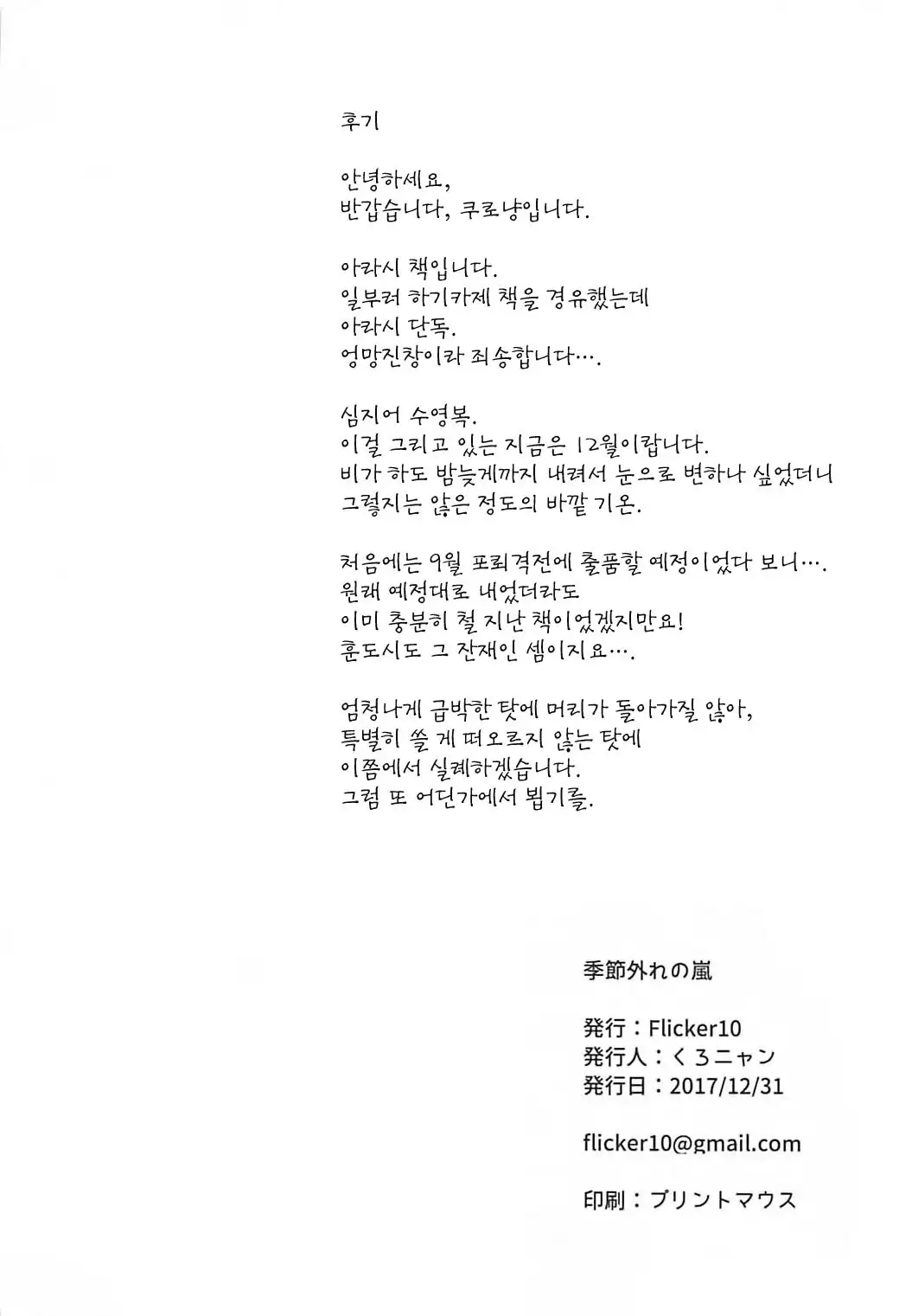 (C93) [Flicker10 (Kuronyan)] Kisetsu Hazure no Arashi (Kantai Collection -KanColle-)