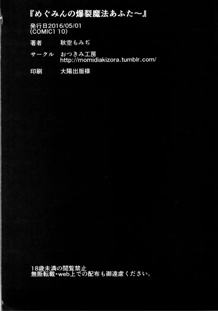 (COMIC1☆10) [Otukimi Koubo (Akizora Momidi)] Megumin no Bakuretsu Mahou After | Megumin's Explosion Magic After (Kono Subarashii Sekai ni Syukufuku o!) [English] [Juster]